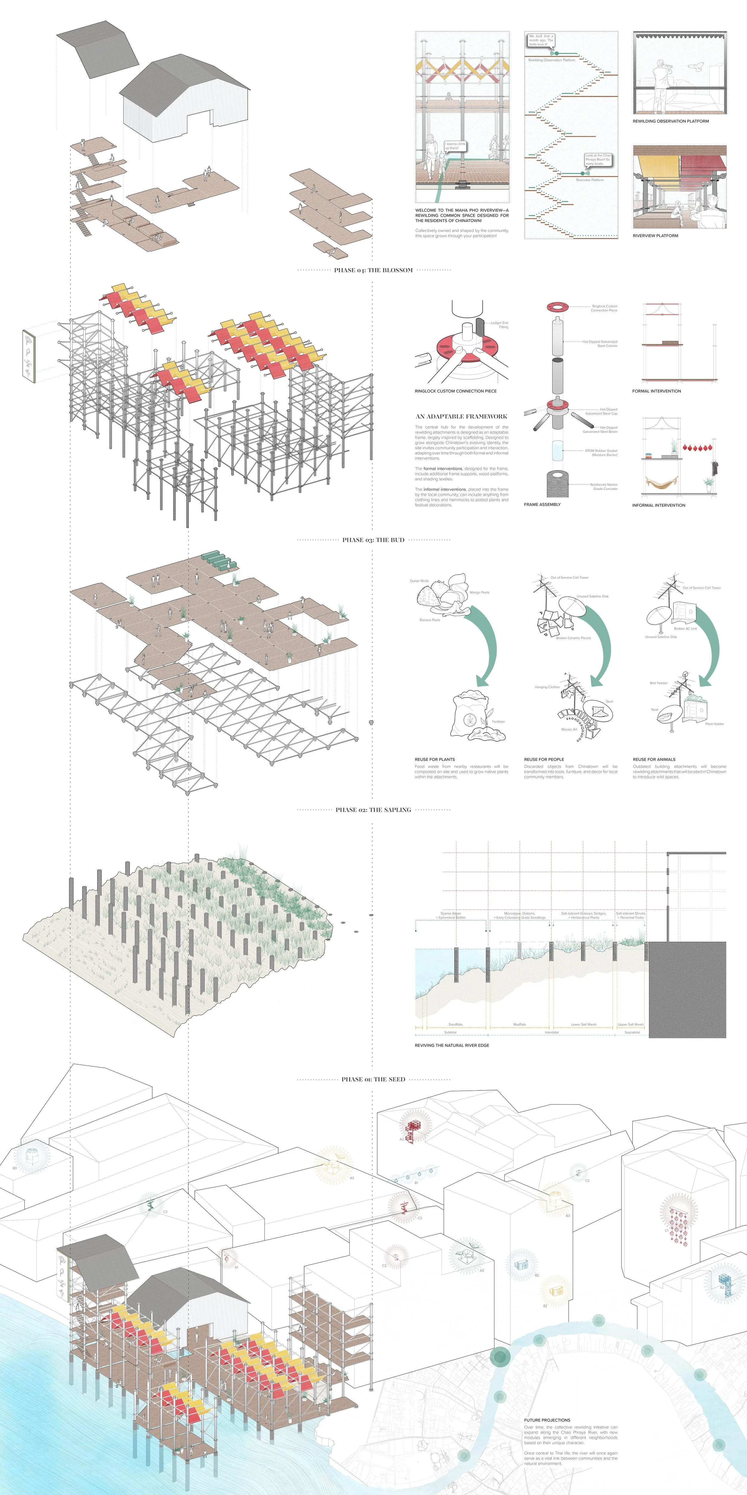 The Bangkok Chinatown area is facing significant challenges from global phenomena like climate change, flooding, and sea-level rise, which threaten the connection between people's lives and the area's rich history. The "Hybridizing" studio aims to develop an alternative design strategy that links past memory with people's resilient, complex, and hybrid way of living to ensure heritage adaptation and survival.