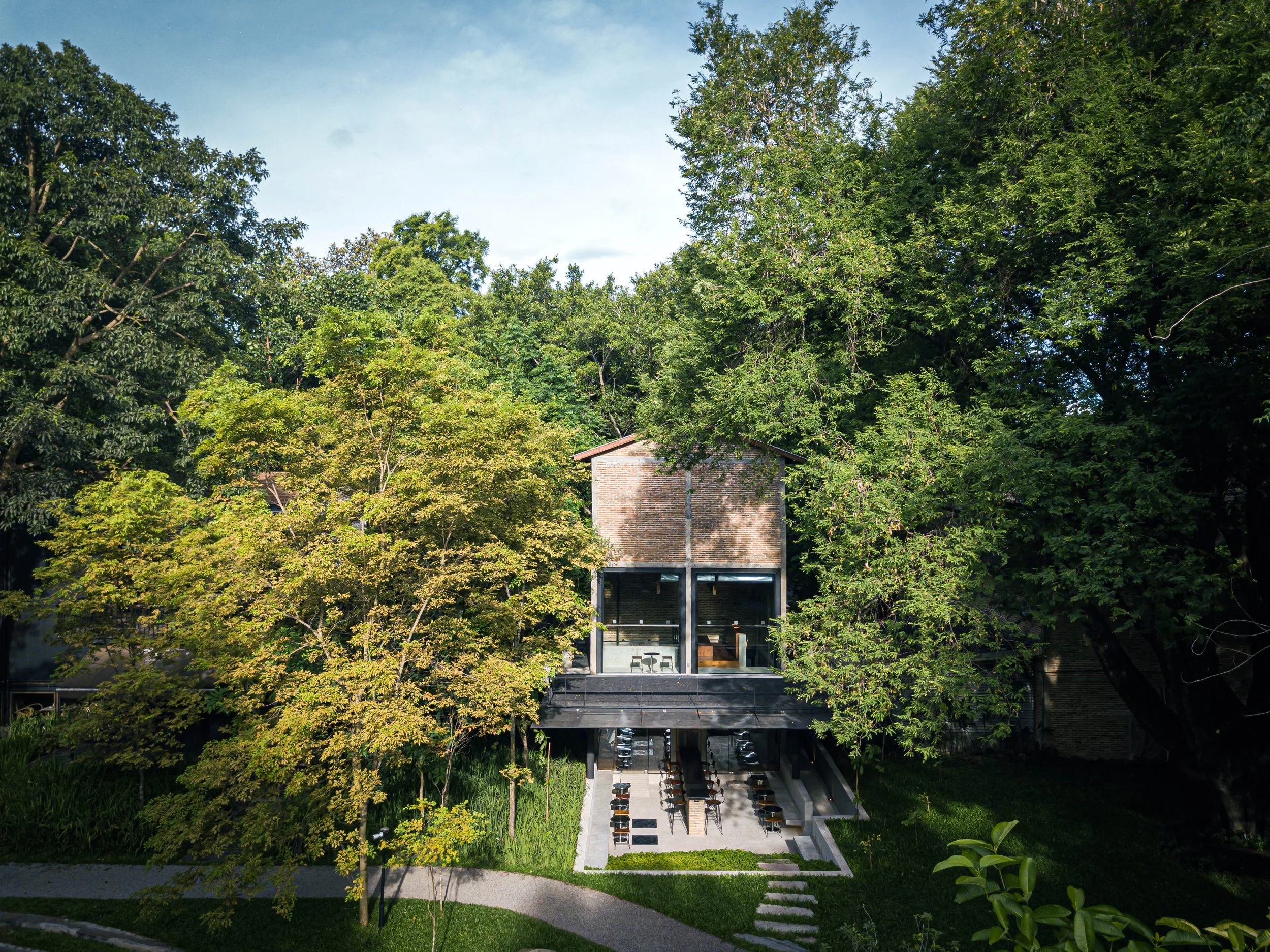 Kaomai Tea Barn is a continuously adaptive-reuse project within Kaomai Estate 1955, the revitalized project of a multi-decade tobacco processing plant estate in Chiang Mai. As part of the incremental plan to unite new commercial programs in the estate, the project location is carefully placed to respect, yet link the surrounding ecology, landscape and existing buildings together. As a result, the design envisions Kaomai Tea Barn as a connection platform to link Kaomai Avenue, the Amphitheater, and Kaomai Cafe both horizontally and vertically.