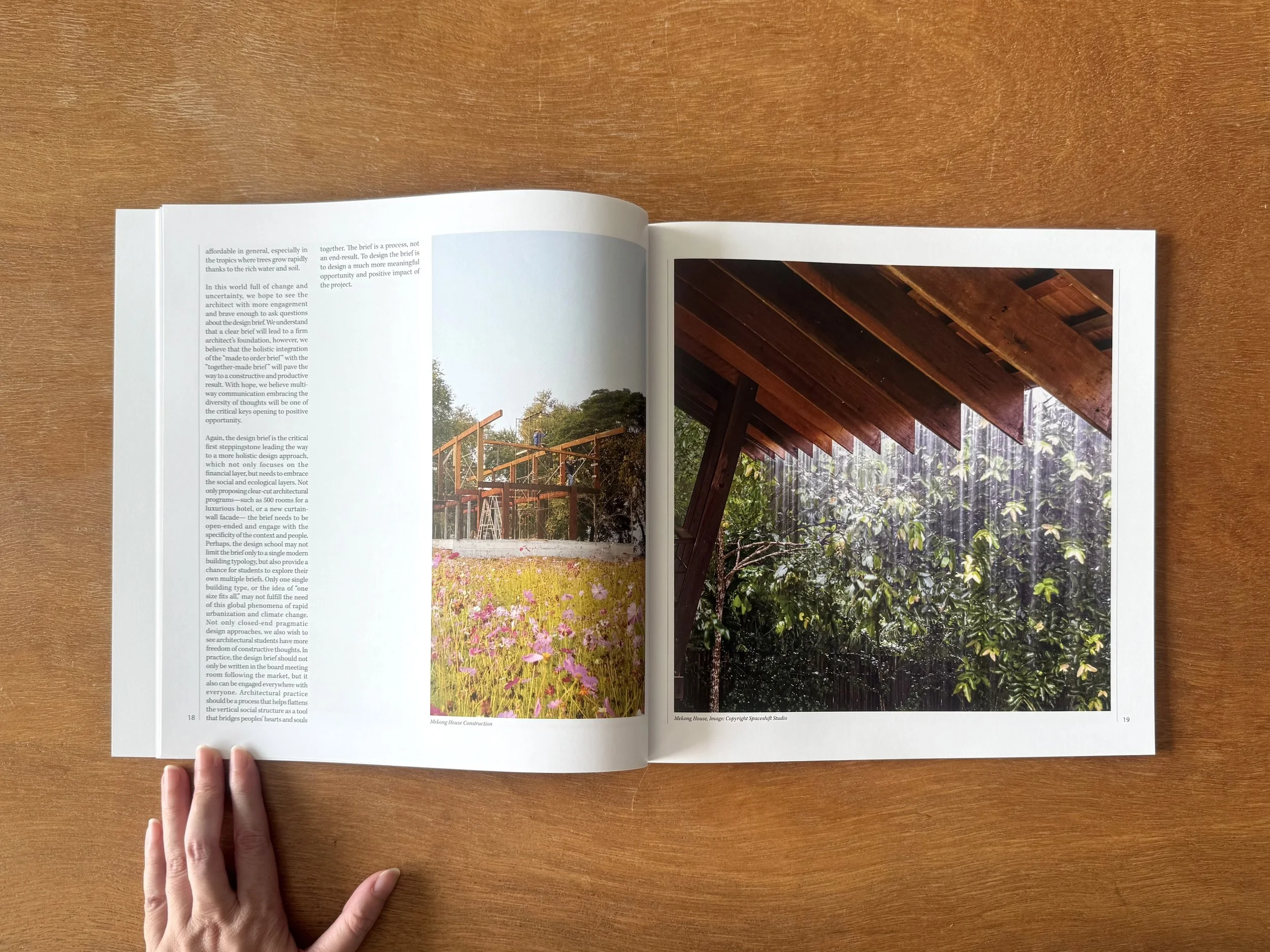 In the decade of our practice, some briefs required designers to create a “White Box” in order to gain a modernized and westernized symbol. Concrete and paint are favorable because people have a feeling that it is cleaner and lasts longer with a minimum of maintenance issues. Devaluing the timber house, some locals move to live in concrete house with a metallic roof, especially the blue metallic roof representing the wealthy status of their family. Because of Thai industrialization, bad practices in timber harvesting, as well as the promotion of agricultural and industrial zones, significantly limit the natural forest area and wood supply. At this point, the popularity of the modernized industrial materials, combined with the limitation of natural resources, has pushed timber as an alternative building materiality in the Thai design industry. From 2017-2025, we had a chance to develop a brief with the clients to design a timber house and a timber hotel next to the Mekong River. We tried to understand the limitations of the timber resources and craftsmanship skills. Realizing the key of the brief is not, “the bigger building is the better building,” but it is much more about the appropriate scale that represents the value of timber, land, and the river. Not driven by the capital and market, we limited the area of building footprints and the number of the rooms as well as not creating too much of a burden for the maintenance of the project in the long run. Trying to understand the local craftsman skills and the availability of resources, such as local carpentry skills, local handmade brick, or local fabric around the site is also the key factor of the brief. Collecting and reusing timbers from various old houses, warehouses, and rice mill factories as the main project material and structure was the purpose of the brief, illustrating the imperfect aesthetic of the timber. We believe that timber should not be a limited resource providing only for small groups of people. Ideally, the brief suggested that timber should be more appreciated and more affordable in general, especially in the tropics where trees grow rapidly thanks to the rich water and soil.